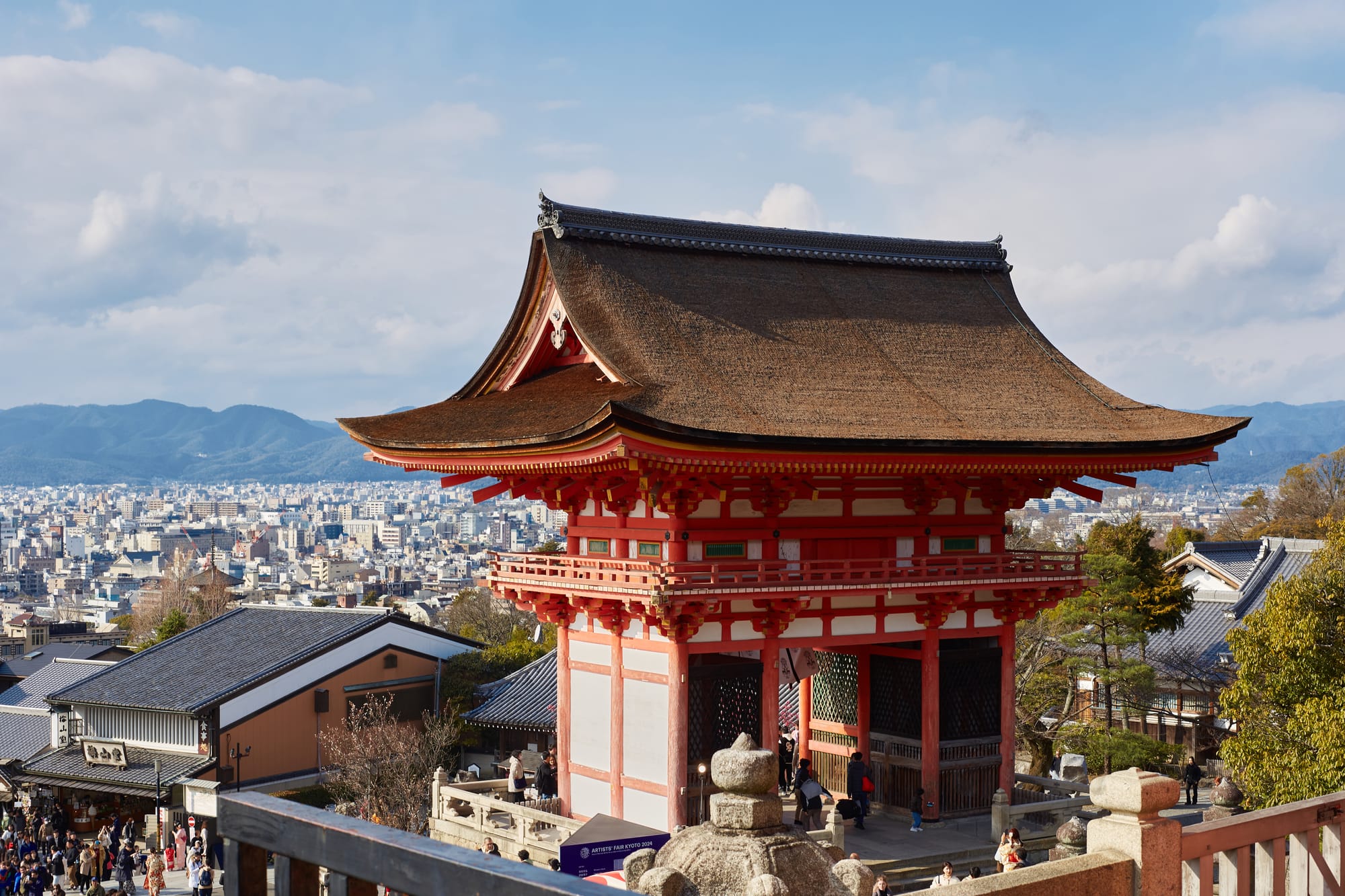 - Kiyomizu-dera: An iconic Buddhist temple with stunning views of the city as its backdrop. The site includes a few gorgeous red structures that will leave you awe inspired. The temple has been designated a UNESCO World Heritage Site and is a must see destination. This temple is extremely popular with tourists so be sure to arrive as early as possible in the morning for an unobstructed view.