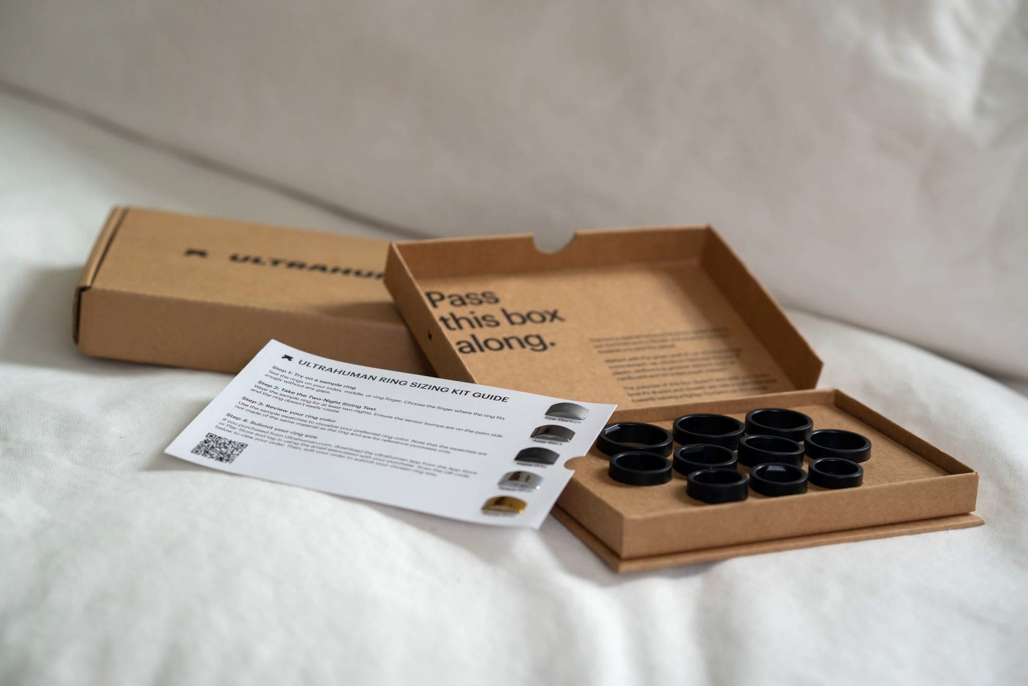 Before receiving the Ultrahuman Ring Air, I was sent a sizing kit to ensure I had the proper size before it came. The whole process is fairly easy, and within a few days of ordering the right size, the ring showed up at my door. I appreciate this step, and it undoubtedly makes things easier on their end to not have people returning rings when they didn’t know their proper size. As someone who does not wear rings on the regular, I didn’t know my size, and my guess was wrong. So being able to fit the ring properly before receiving it meant no hassles when it did arrive.